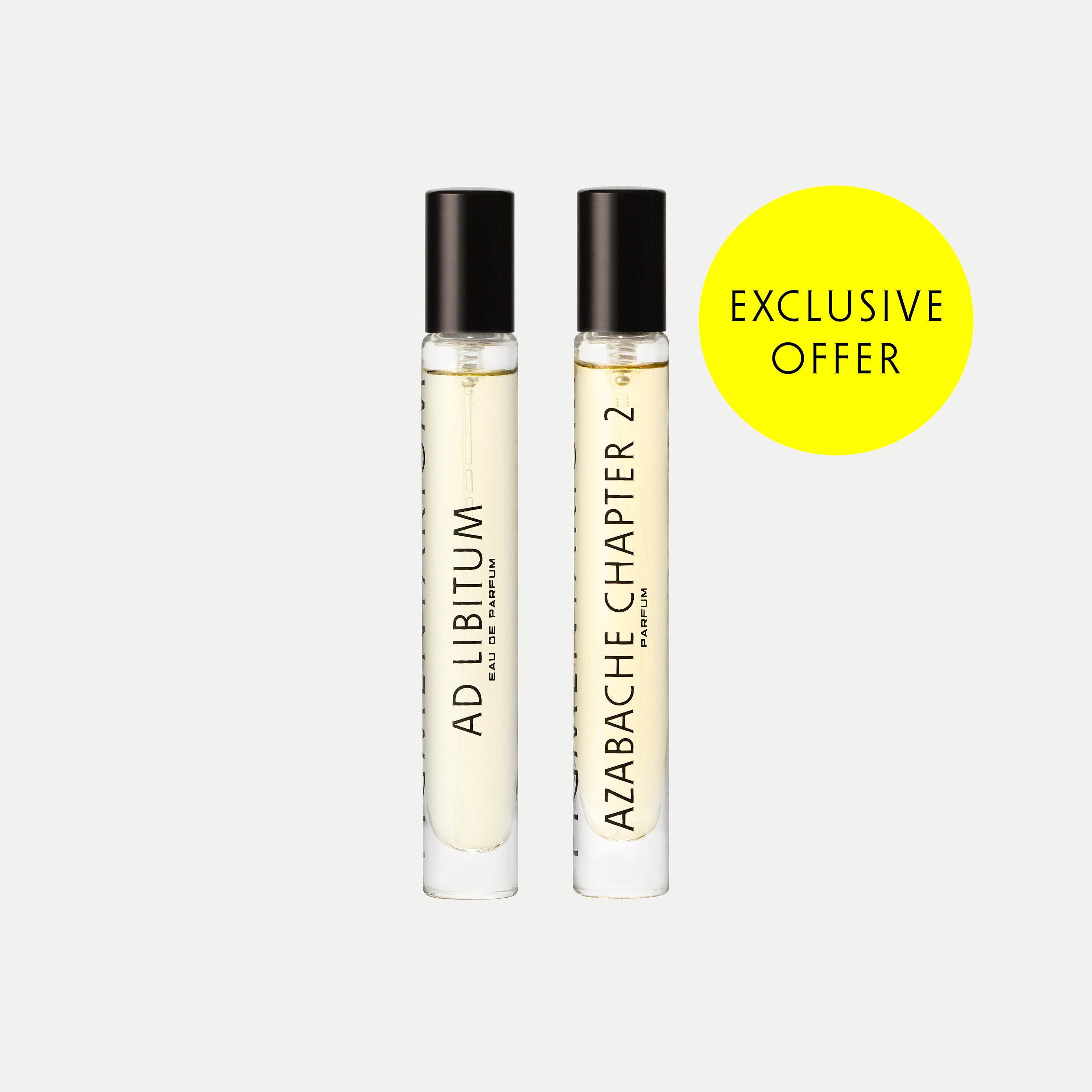 AD LIBITUM — Citrus, green moss, and patchouli as a timeless elegance. AZABACHE CHAPTER 2 — Geranium, labdanum, incense, and myrrh in a minimalist, distinctive fragrance. BRUTAL — Tuberose, May rose, tobacco, coffee, and sandalwood in a confident, opulent composition. EROTIKON — Chocolate, pink pepper, and tonka beans in an elegant gourmand fragrance. GENESIS —Delicate and green laurel, lily of the valley, and fig leaf scent. MURMUR — Bold and opulent accords of amber, rose, oud, and sandalwood. ORATORIO — Fresh mandarin with warm incense and cedar in a sophisticated profile. PARADISO — Bitter-fresh blend of grapefruit, juniper, pepper, and vetiver.
