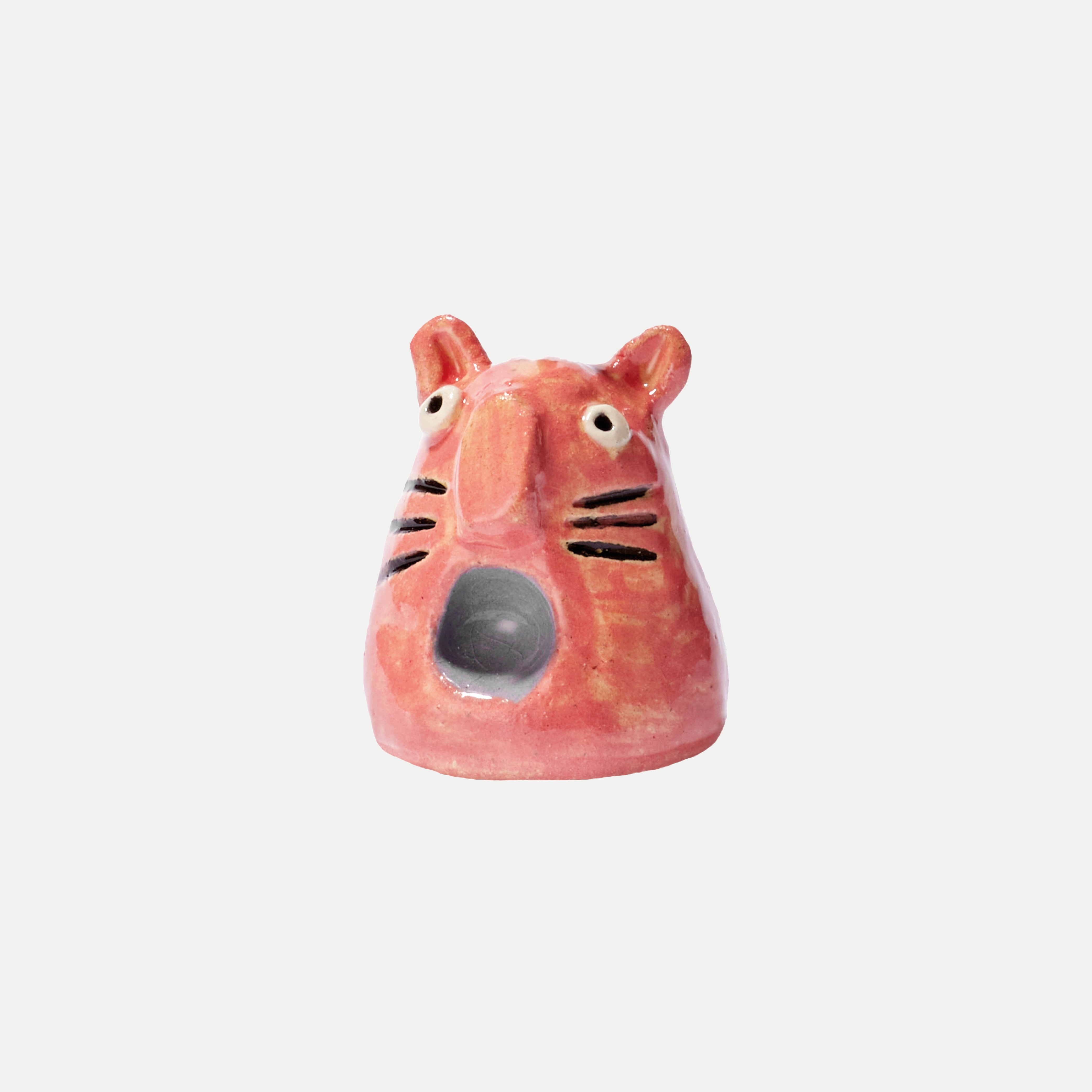 Atelier Šunčík x Pigmentarium. Růžový keramický stojánek na vonné tyčinky Pigmentarium v podobě kočičí hlavy, inspirovaný Faustovým domem. Jediný originální kus od Atelier Šunčík, dekorovaný ručně vyrobenými engobami z přírodních pigmentů, glazovaný.